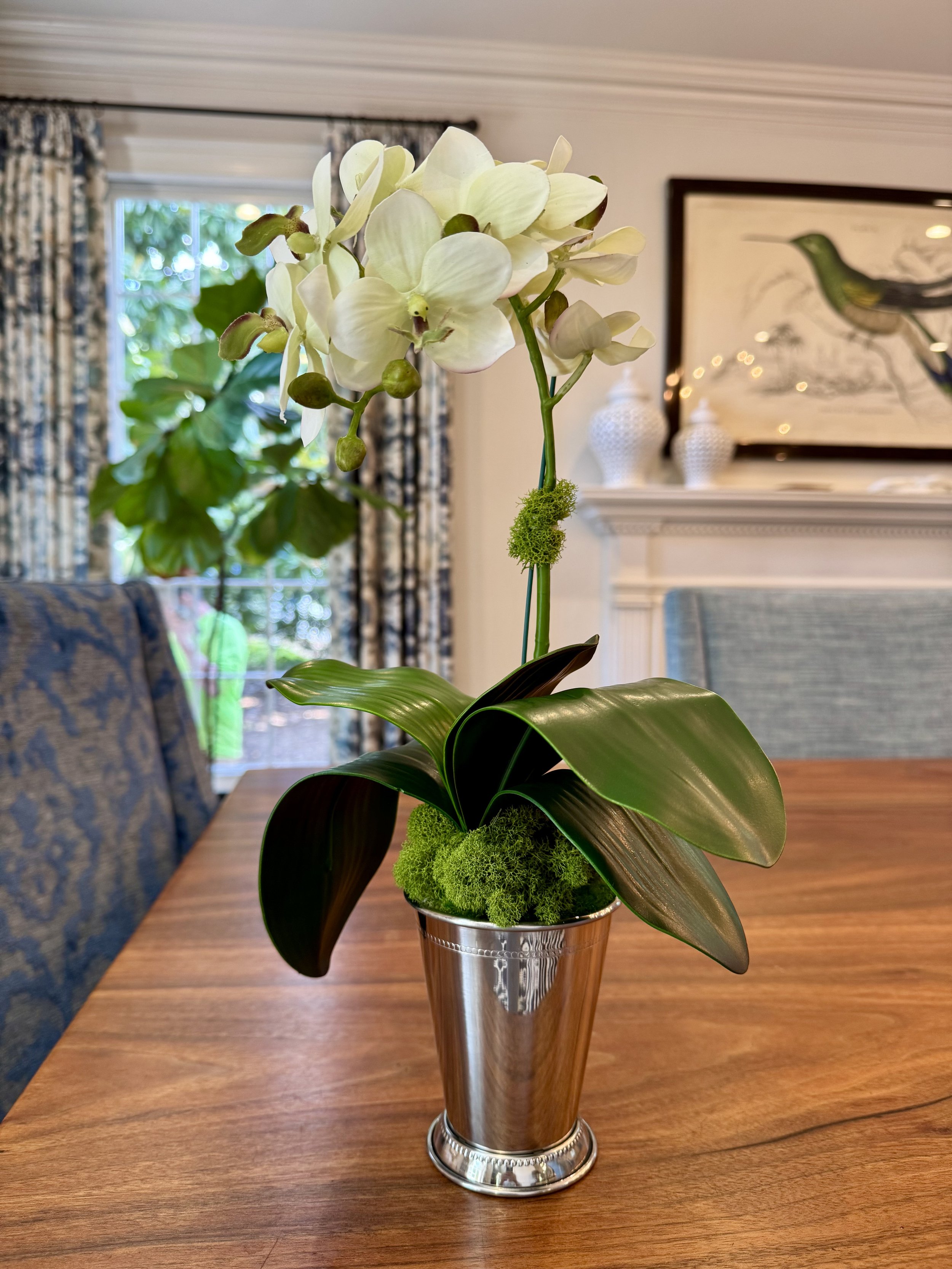 Single and double stems faux orchids make beautiful accent pieces on desks, side tables and consoles. Triple stems make the most lovely centerpieces for dining tables, entryways or corporate spaces.